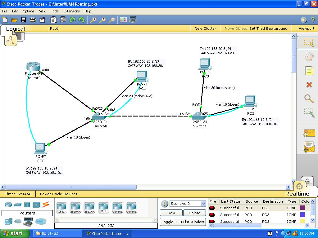 Pertama buka aplikasi Packet Tracer 5.3, terus buat jaringan seperti yang ada dibawah ini: